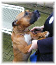 Nadine erholt sich nun im Tierheim Wuppertal. Sie wog bei Einlieferung am 30.12.01 gerade noch 12 kg (!!!) und hat seitdem schon einige Kilo zugenommen.